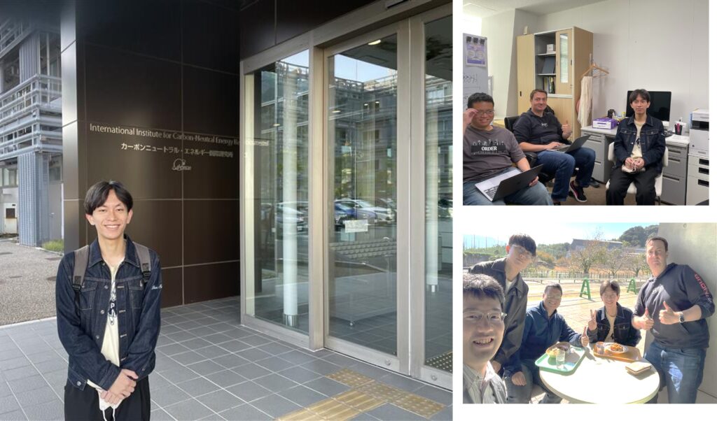 2025/11/7 藤崎助教と高橋(学部3年)が、九州大学カーボンニュートラル・エネルギー国際研究所のStaykov研究室を訪問し、研究ミーティングを行いました。 ミーティングでは、最新の研究成果や今後の共同研究の展望について議論を行いました。 やり取りはすべて英語で行われ、高橋も積極的に英語でコミュニケーションを図りました。 (写真:九州大学 Staykov先生と学生ら)
